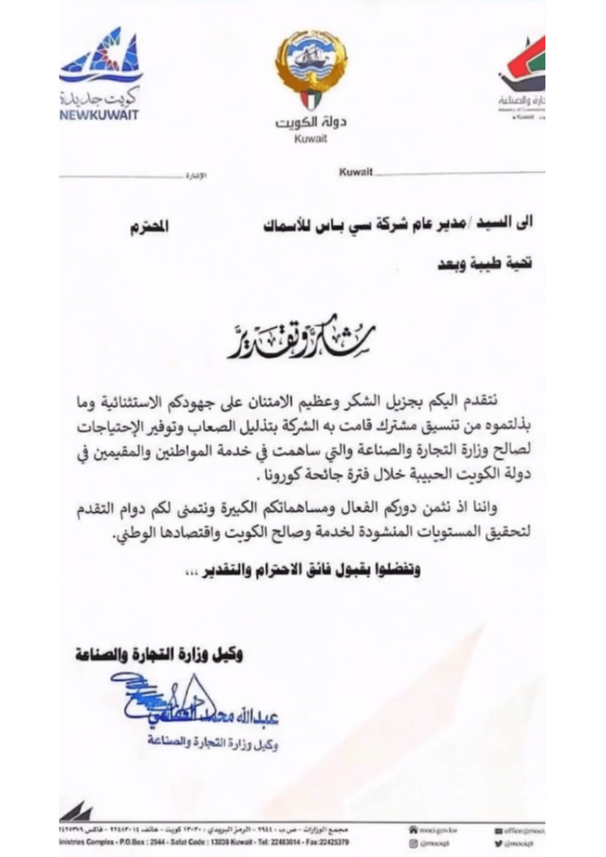 SeaBass Fish Company was established in 2012 as a Kuwaiti company specialized in importing fresh European fish from major certified global suppliers. Daily air shipments are made to ensure the fish reach consumers fresh. The company has earned the trust of many restaurants, cooperatives, and markets across Kuwait, including Carrefour, Sultan Center, and Lulu.